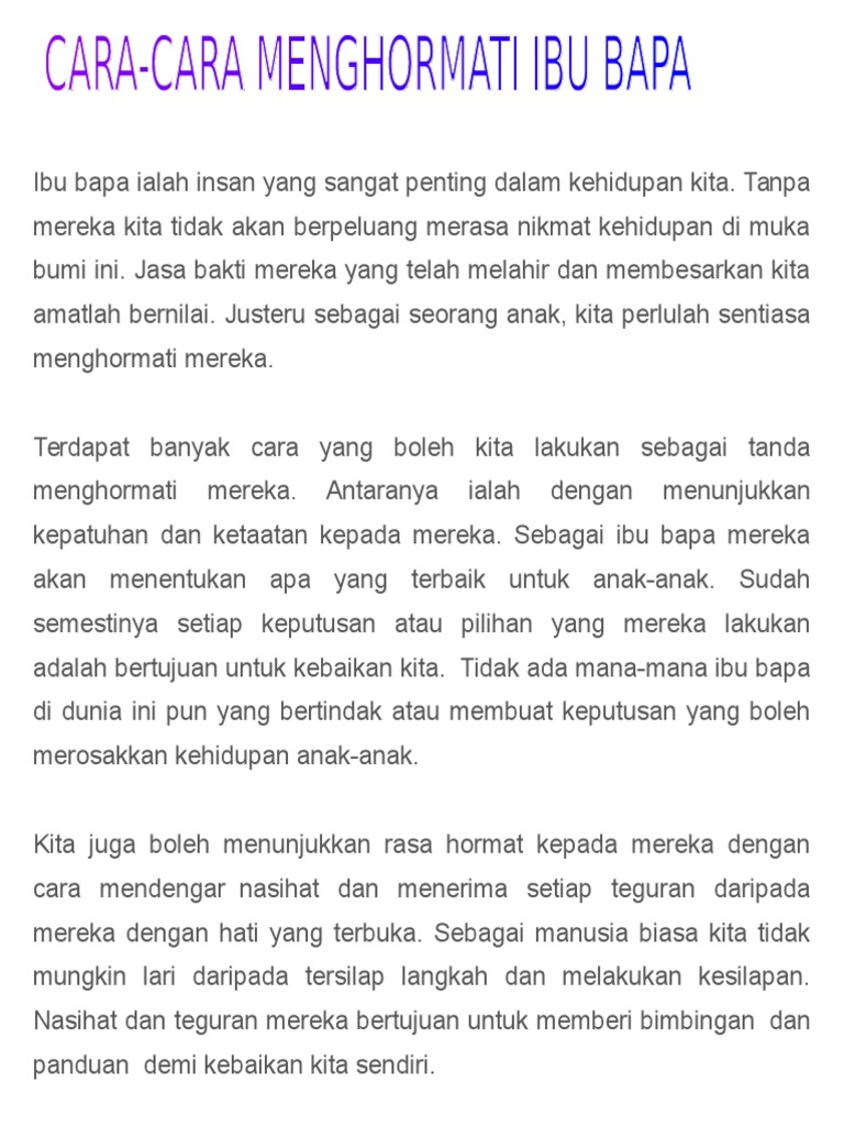 Kita perlu menghormati ibu bapa. Kepada Yth Bapak Ibu. Jika anda mahu anak anda.
